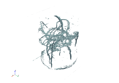 これは pyvista.ImageData で,一貫した間隔を持つ一様な点の集合を含むデータセットです.このデータセットをプロットするとき,個々のセルを,そのセルに関連するデータの内容に基づいてプロットする,volumetric plottingを有効にするオプションがあります.