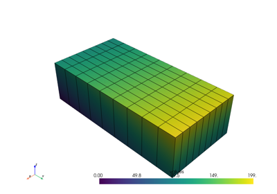 (0, 0, 0)と(1, 1, 1)に設定します.これは,PyVistaとPythonのもう一つの素晴らしい点です.VTKライブラリのすべてを前もって知っておく必要はなく,非常に簡単に始めることができます.慣れてきて,もっと複雑なことをする必要が出てきたら,もっと深く掘り下げることができます.例えば,原点と間隔の変更は以下のように簡単にできます.grid.origin = (10, 20, 10) grid.spacing = (2, 3, 5)